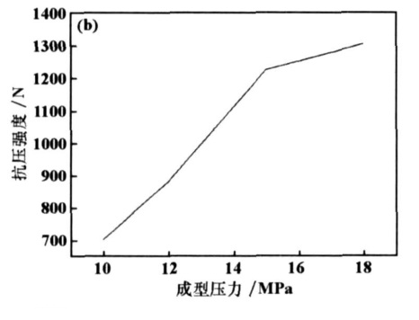 (2)粘結(jié)劑對(duì)成型后球團(tuán)抗壓強(qiáng)度的影響是先增后減,在加入 6%的糖漿時(shí),成型壓力與成型后球團(tuán)抗壓強(qiáng)度的關(guān)系是隨成型壓力的增加 ,球團(tuán)抗壓強(qiáng)度不斷增加;水分加入量不大時(shí)對(duì)球團(tuán)強(qiáng)度影響也不大, 當(dāng)含量超過 3%以后,球團(tuán)強(qiáng)度隨水分含量的增加急劇降低 。