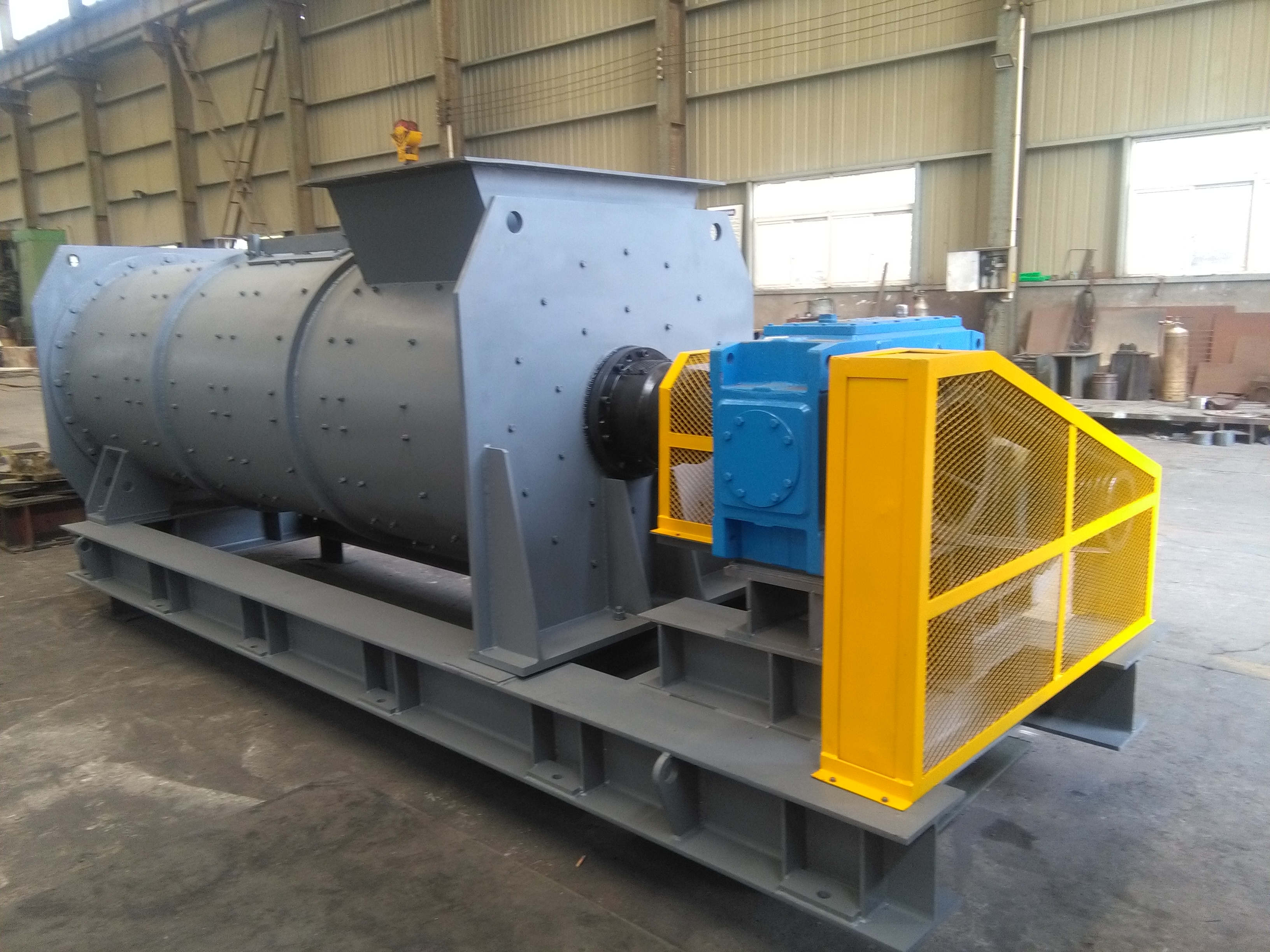 混合機(jī)的作用是將按一定配比粉礦和粘結(jié)劑充分混合,使進(jìn)入壓球機(jī)的粉料成分均勻,保證得到較好的成球率。強(qiáng)力混合機(jī)采用逆向強(qiáng)對(duì)流混合,徑向和軸向均有混合。連續(xù)不間斷的進(jìn)料和出料,降低混合時(shí)間,提高生產(chǎn)效率。